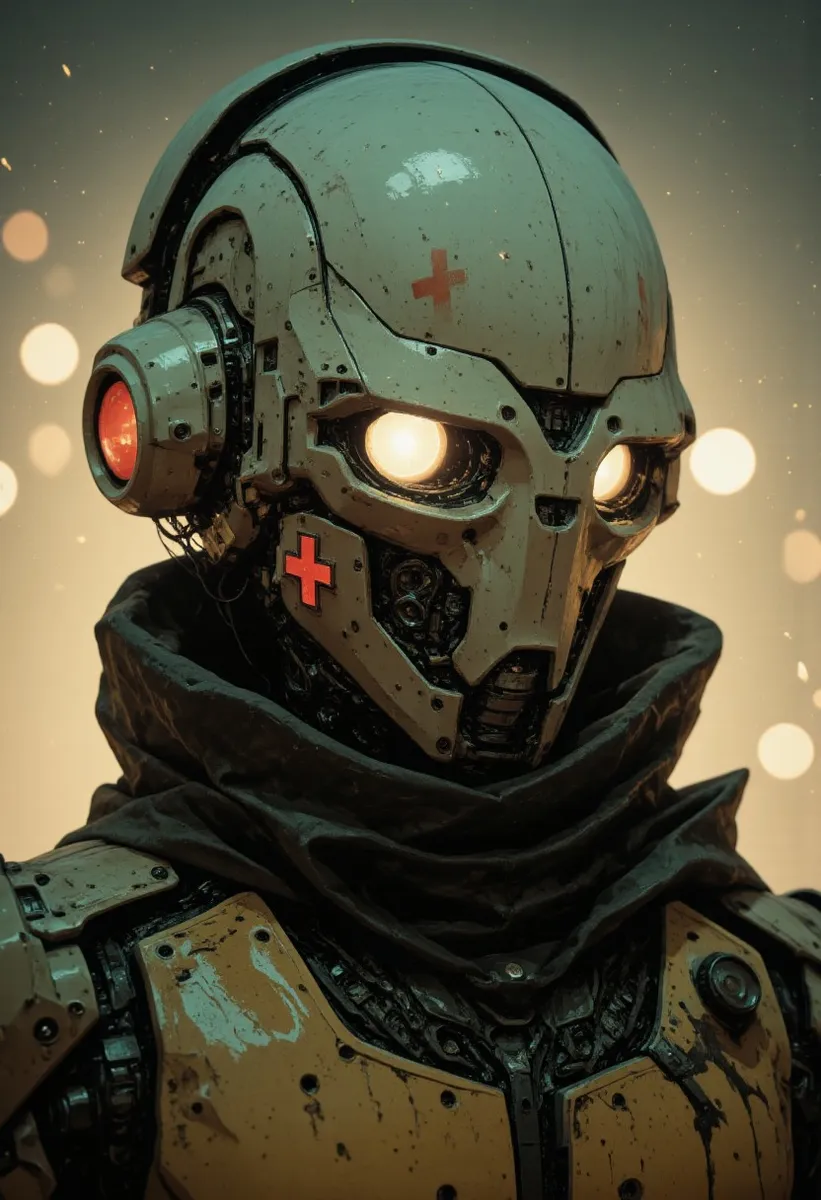 Battle-Medic Android with Gritty Mechanical Skull