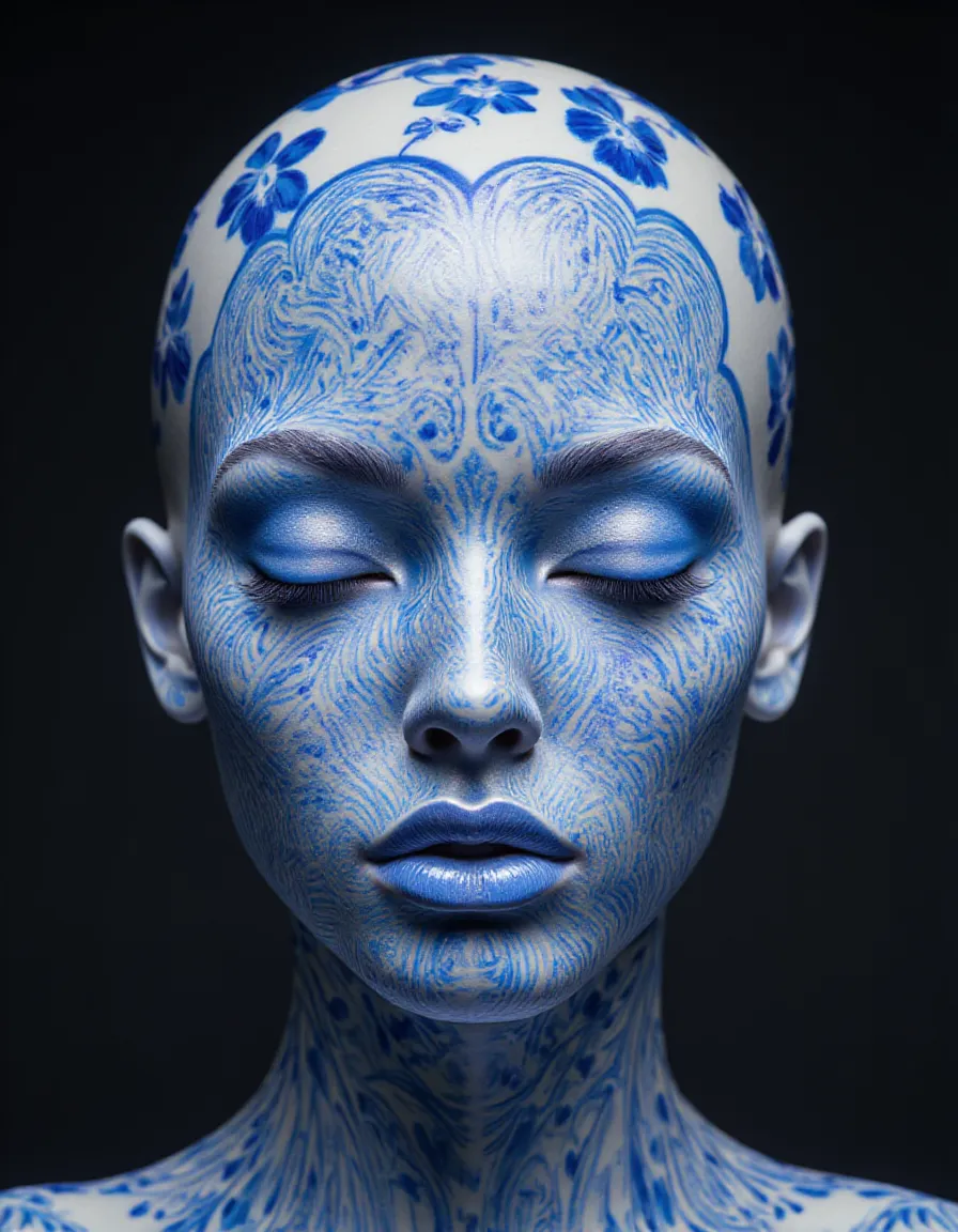 Porcelain Face with Intricate Blue Patterns
